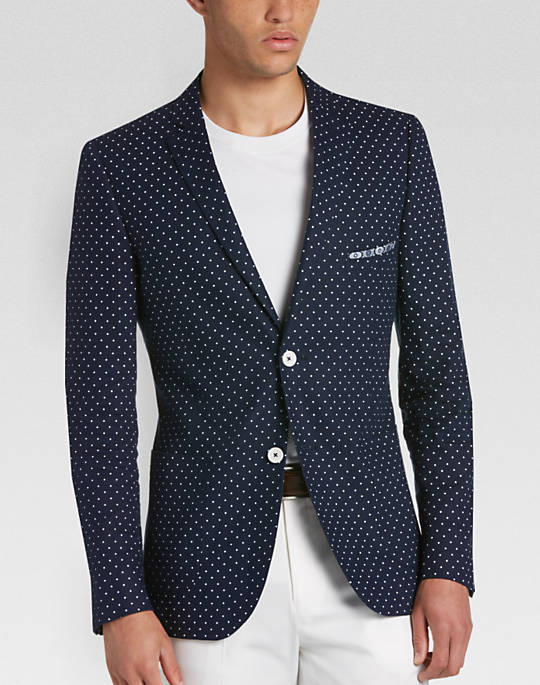 Suit separates allow you to choose coat and pant sizes separately for an ideal fit. This stylish Gray Slim Fit Suit Separates Coat Navy Dot has a fashion-forward cut and pattern that will enliven your dress and professional wear looks. Mix and match with other Paisley & Gray suit separate pieces.