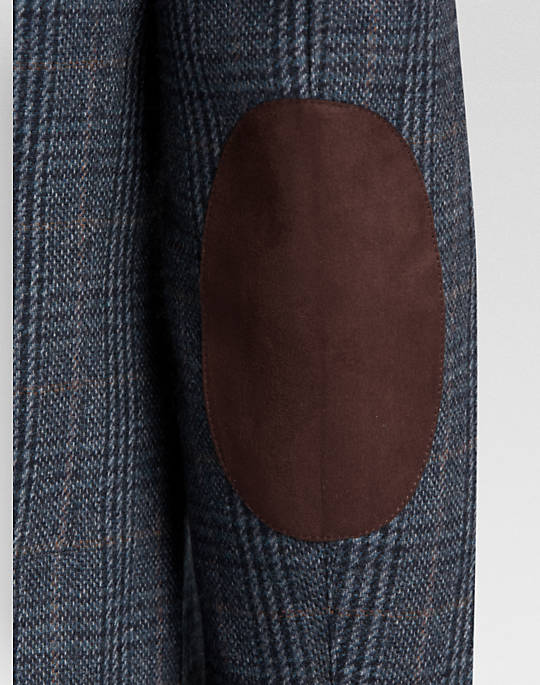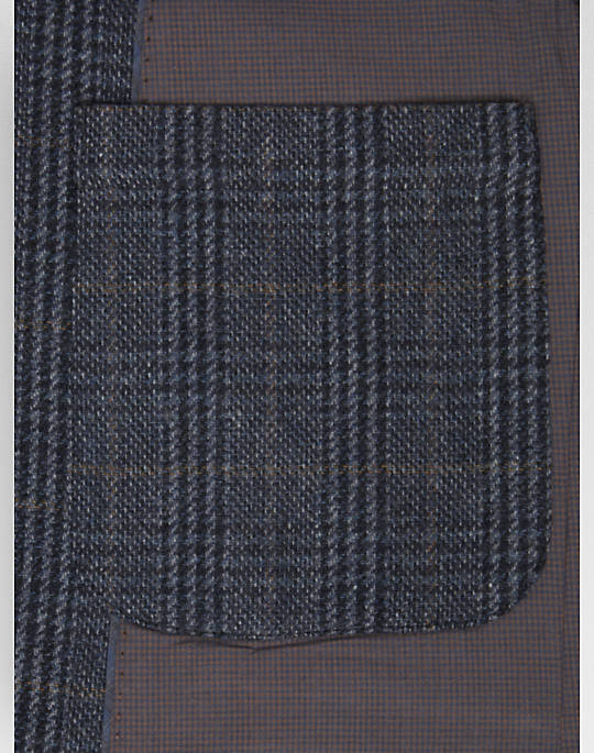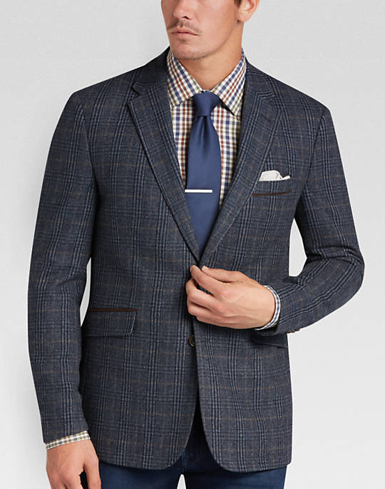 With a navy plaid pattern and a notch lapel, this casual coat is cut for a trimmer fit through the chest and waist. It features a soft, body conscious fit that is less constructed than the typical sport coat.