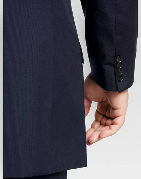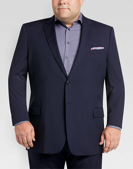 This Navy Stripe Suit, Portly is ideal for the gentleman who prefers a roomier fit through the chest and midsection. It stands out with a fine wool blend fabric and classic notch lapel.