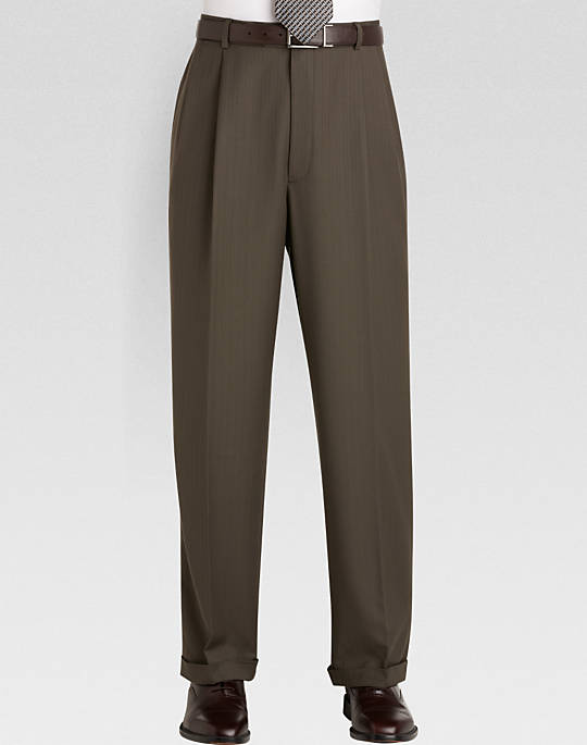 - Double-pleated slacks have an unfinished hem so you can tailor them to your exact measurements.