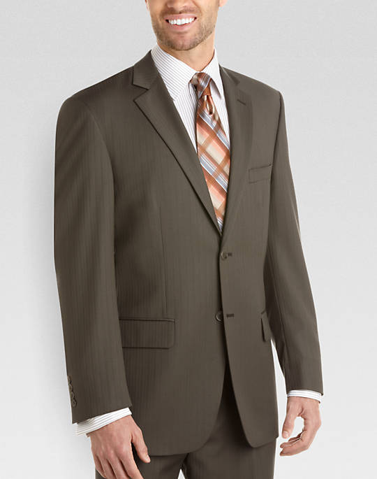 This sleek suit is cut for a slimmer fit through the chest and mid-section. Double-pleated slacks offer a more relaxed fit through the thighs.